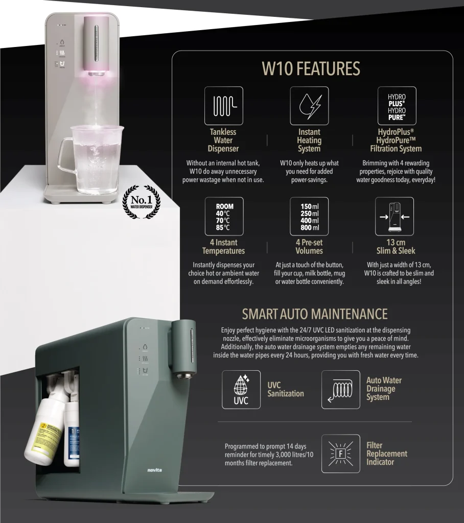 3.Novita understands these common headaches. That’s why the W10 Hot Water Dispenser offers innovative solutions: