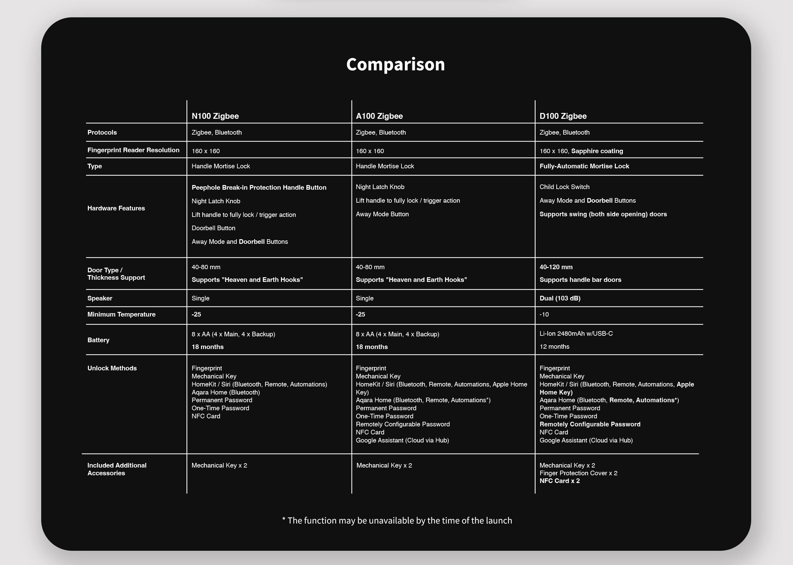 Aqara D100 Zigbee Fire Rated Digital Door Lock Specifications: