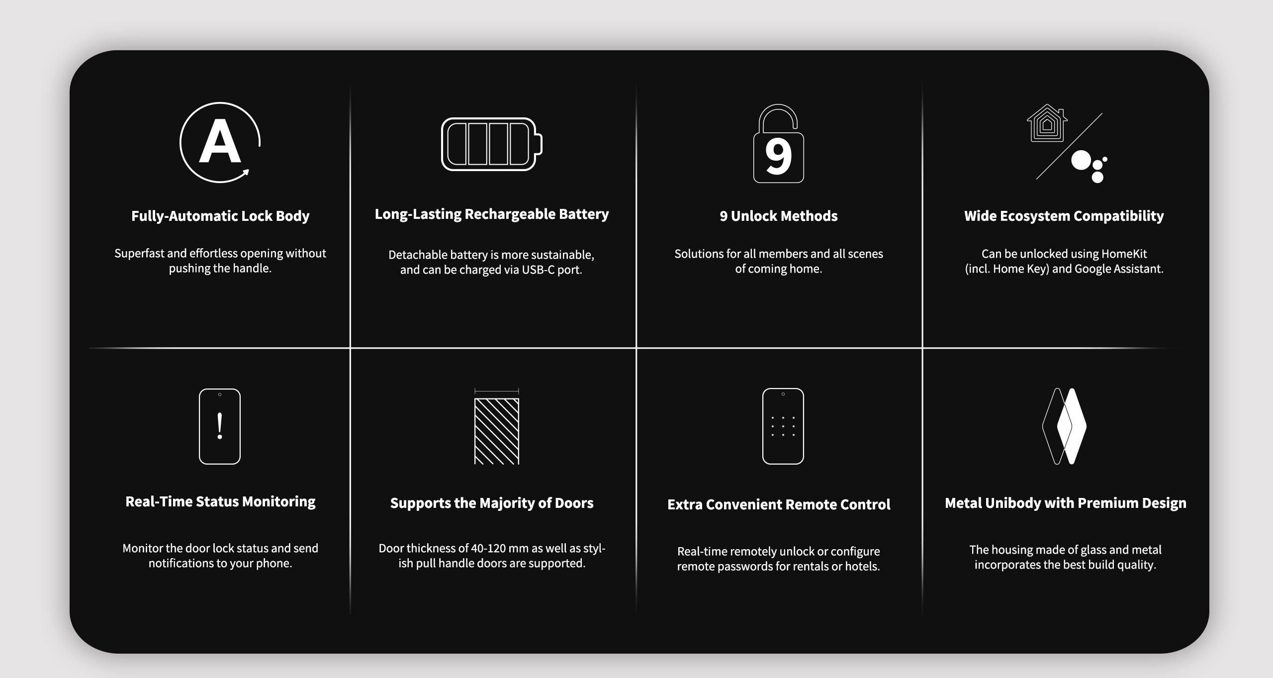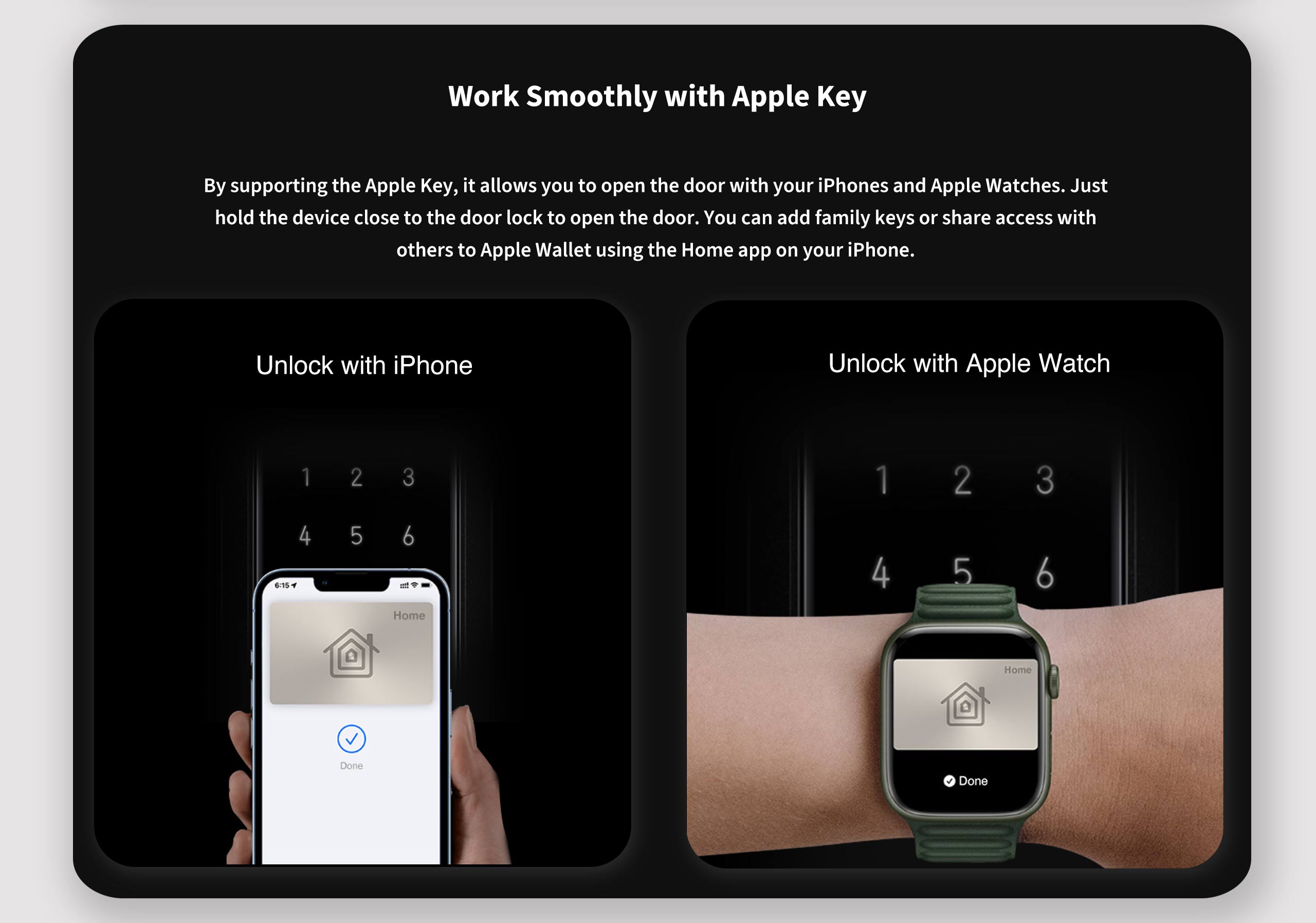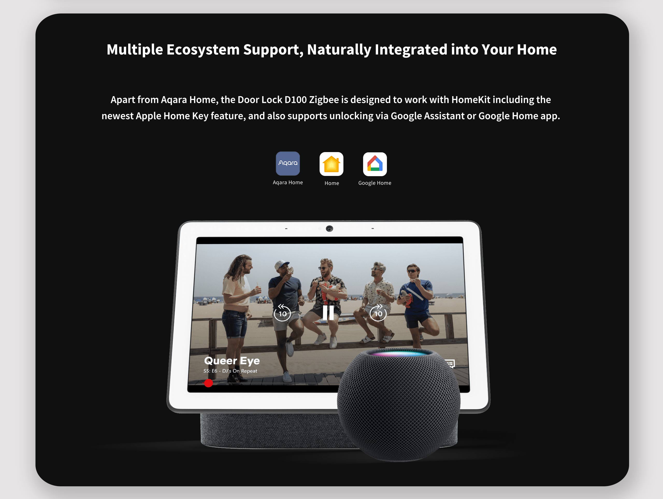 Apart from Aqara Home, the door lock D100 Zigbee is designed to work with HomeKit including the newest Apple Home Key features and also supports unlocking via Google Assistant or Google Home App.