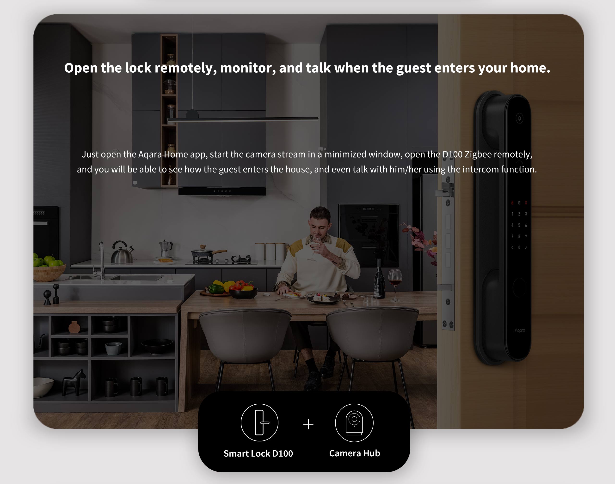 Just open the Aqara Home app, start the camera stream in a minimized window, open the D100 Zigbee remotely, and you will be able to see how the guest enters the house, and even talk with him/her using the intercom function.